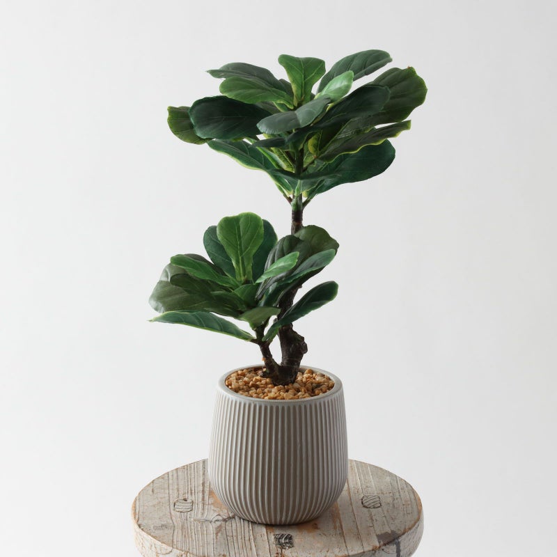 No.8439 プレミアム光触媒フェイクグリーン【そのまま飾れる 完成形デザイン】 「穏やかな陰影を描く立体リーフ × リズムラインのLineaポット仕様|小ぶりで上品なモダンアクセント|フィドルリーフフィグ(カシワバゴムノキ)|高さ35cm × 幅20cm × 奥行21cm」
