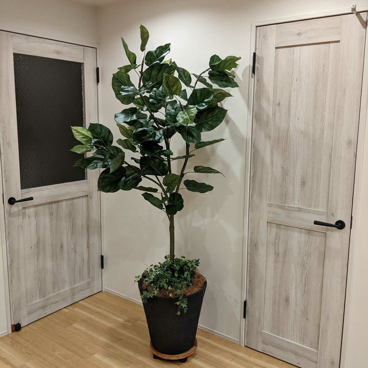他の画像を見る 【新商品】【空気清浄】【リアル】 No9425 プレミアム光触媒フェイクグリーン【幹のラインを整えた半完成品】 「強さとやさしさをあわせ持つ葉姿 × 緩やかに伸びる枝ぶり|フィドルリーフ(カシワバゴムノキ)|高さ190cm × 幅100cm × 奥行70cm」 特別価格 ¥ 21,800 税込 鉢カバーが選べる 幹のライン調整済 送料無料 クーポンで10%OFF 詳細を見る お気に入り (0)