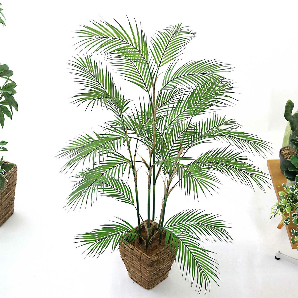 他の画像を見る 【新商品】【空気清浄】【リアル】 No9400 プレミアム光触媒フェイクグリーン【幹のラインを整えた半完成品】 「しなやかな葉のライン × 伸びやかに広がる枝ぶり|アレカパーム|高さ160cm × 幅120cm × 奥行100cm」 特別価格 ¥ 15,800 税込 鉢カバーが選べる 幹のライン調整済 送料無料 クーポンで10%OFF 詳細を見る お気に入り (0)